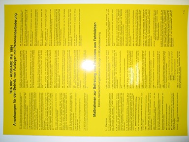 DE79104 LABEL,GERMAN 400X300MM Sign in or create a user account here to see more product details. Sign in or Register Product Details TYPE INSTRUCTION LABEL LANGUAGE GERMAN COLOUR YELLOW BACKGROUND - BLACK TEXT CONTENT ELEVATOR OPERATION WITH EMERGENCY CONTROL MATERIAL PVC DIMENSIONS 400X300MM Product Description en: LABEL,GERMAN 400X300MM es: Lable German, 400x300mm de: SCHILD ANWEISUNG F. D. BETR. V. AUFZÜGEN zh: 标签 GERMAN, 400X300MM en: LABEL,GERMAN 400X300MM Material Utilisation Group 14300 - LABELS 14300 - LABELS Material group A70 - Stickers Gross weight 0,03 Unit of weight kg Sales Unit of Measure PC